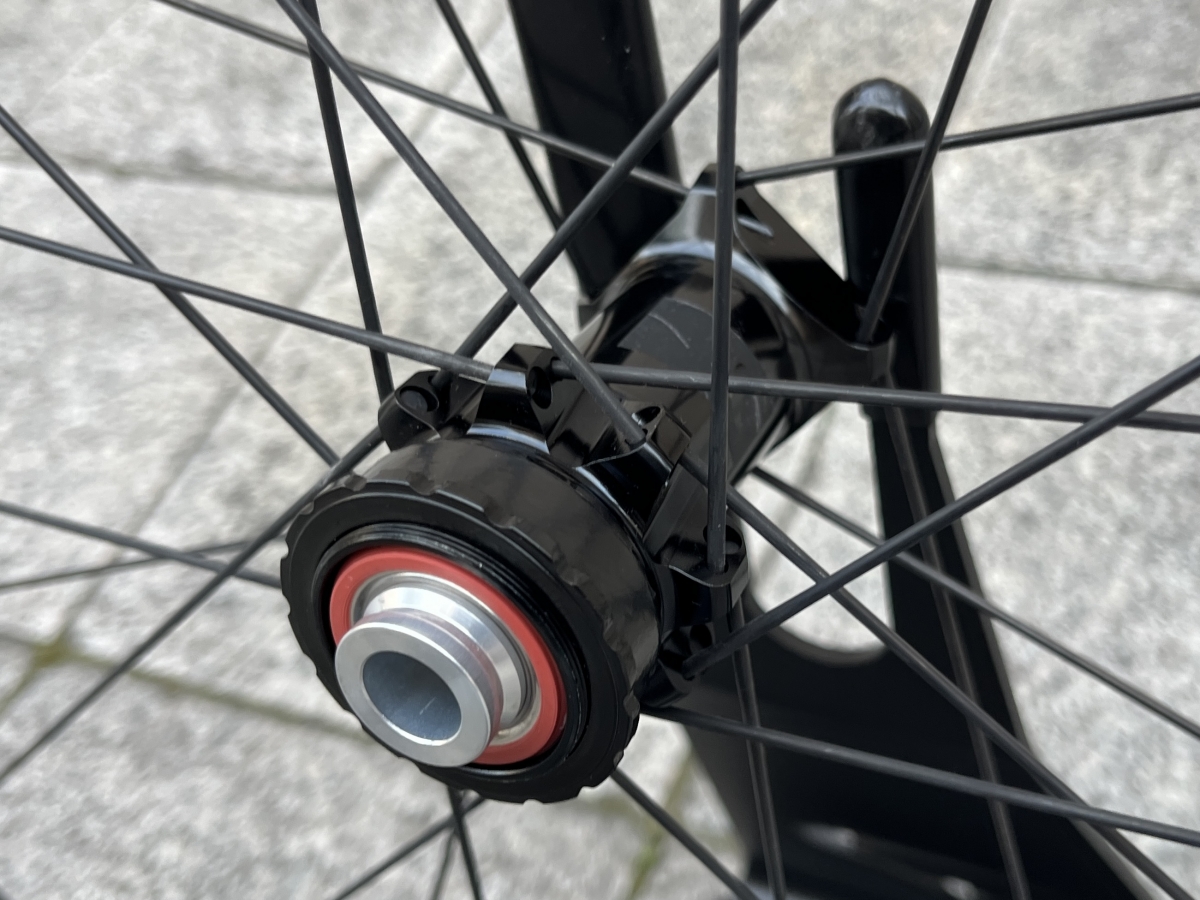 ストレートプルスポークが採用されています。ハブの構造も剛性感があるつくりとなっています。