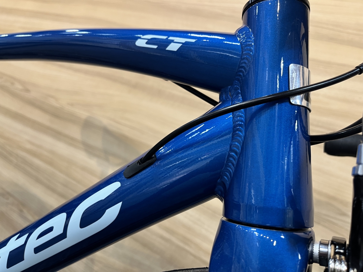 エントリー価格帯ながらフレームの中に内装される仕様でスマートなデザイン。長めのヘッドチューブとホイールベースになっているのでアップライドの体勢でロングライドがしやすい仕様。