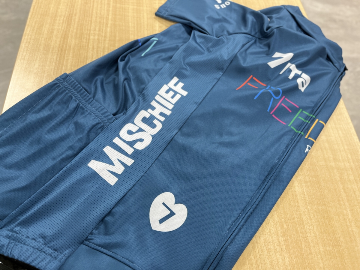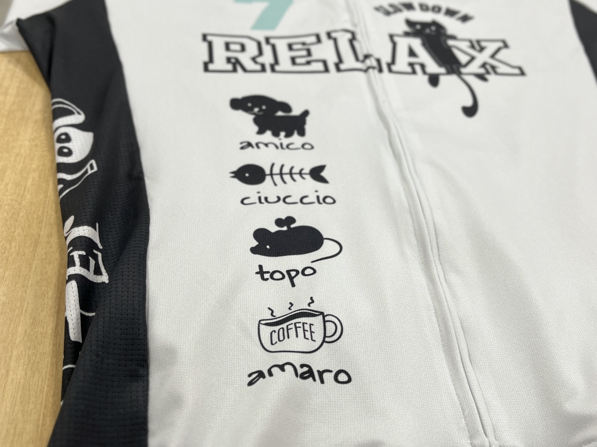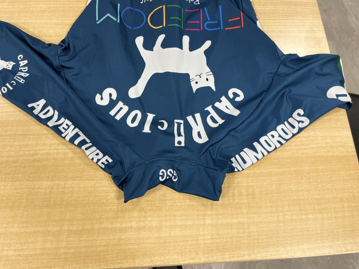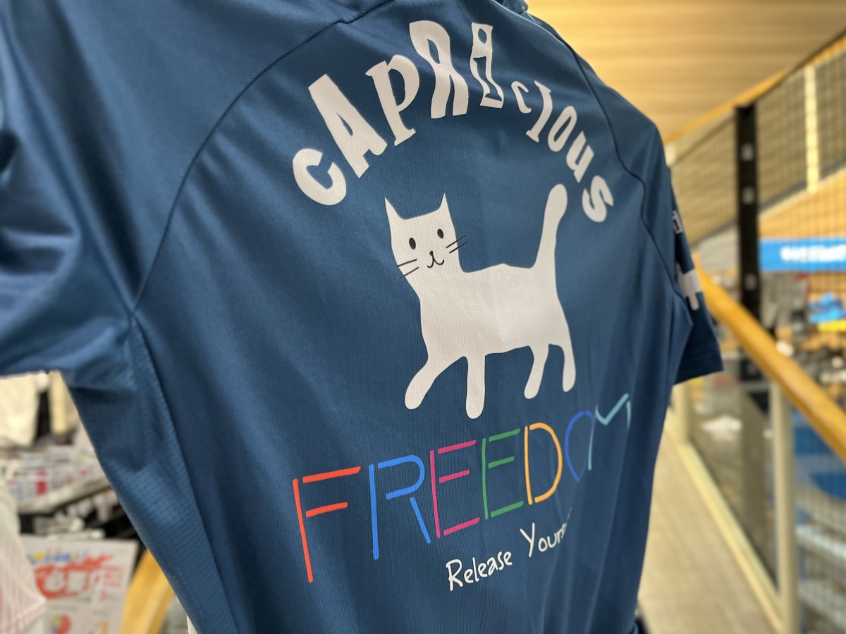 7ITAコレクションで繰り返しモチーフとされてきた7ITAを象徴する言葉「Freedom」と自由なネコ達のデザインを組み合わせたサイクルジャージ。