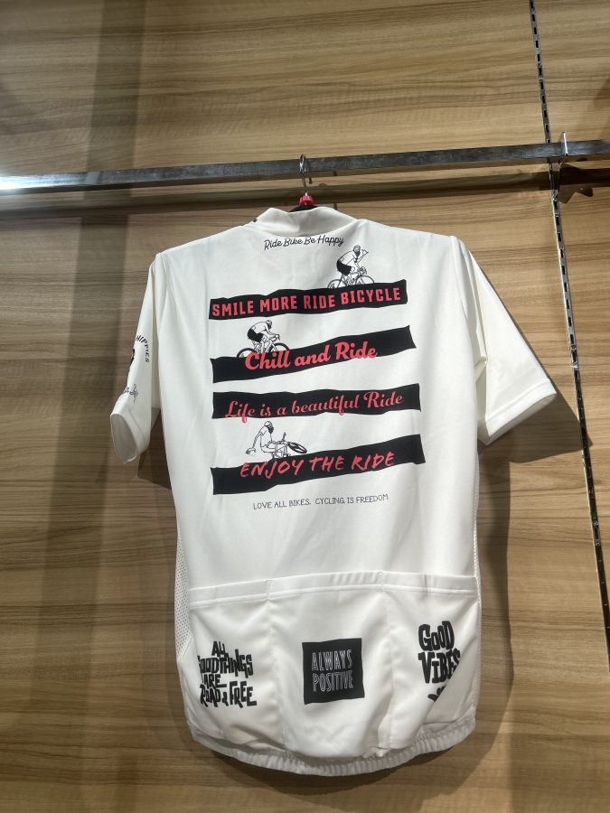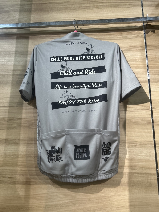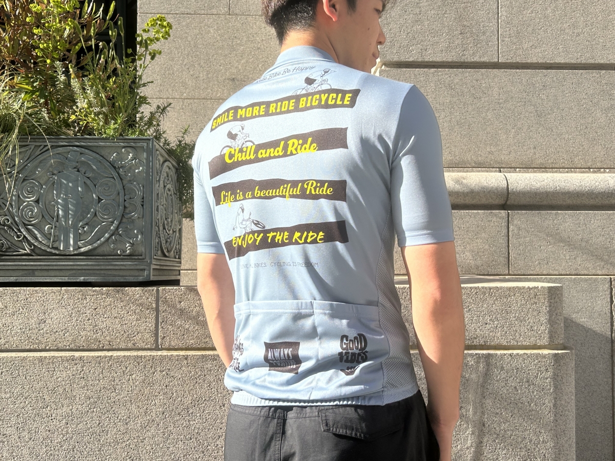 背面にもデザインがあり、自転車愛が溢れるウェアになっております。