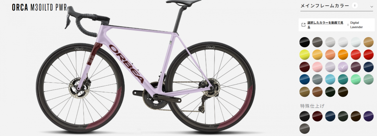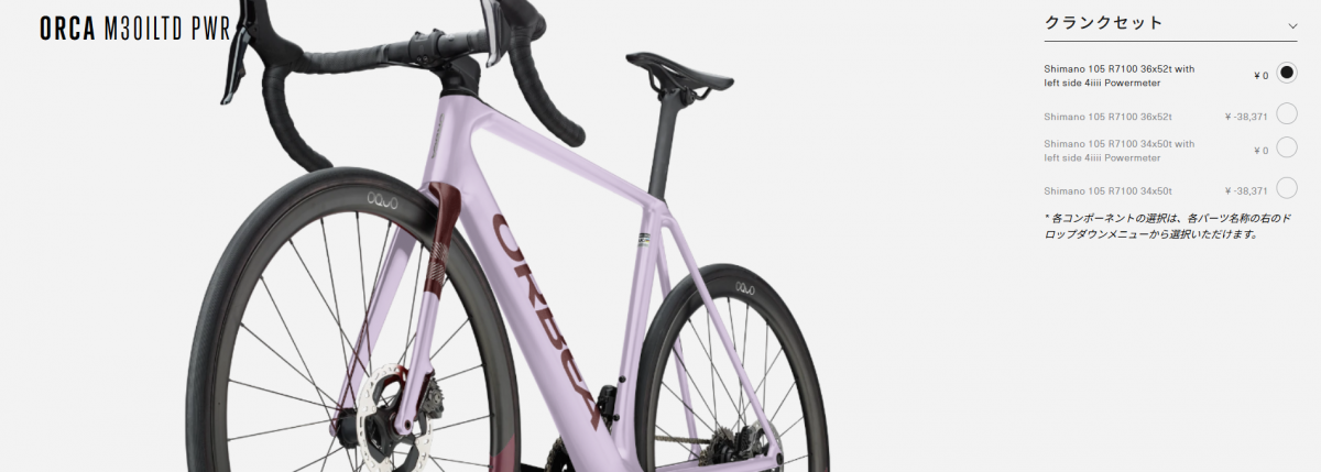 ORCA バイク名/M フレーム素材/11E コンポーネント/LTD カーボングレード/PWR パワーメーター有無