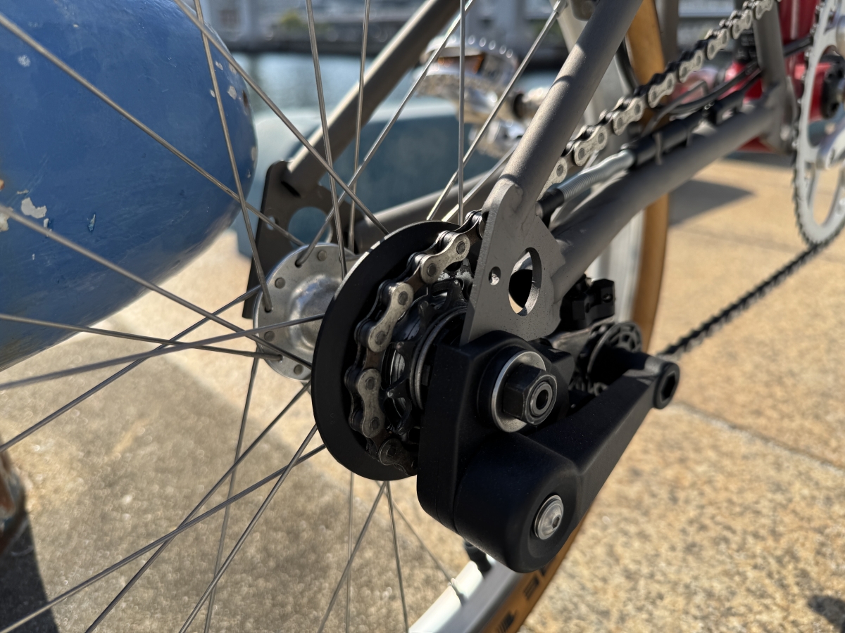 一見ギアが足りないように思えますが、積極的にアップダウンに行かない事や街乗りメインでそこまで遠出をしない為2速で十分対応できます。