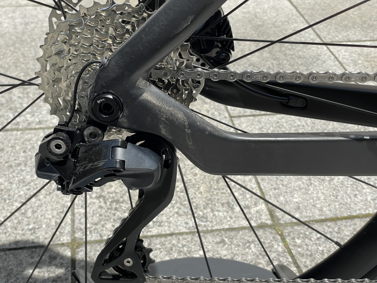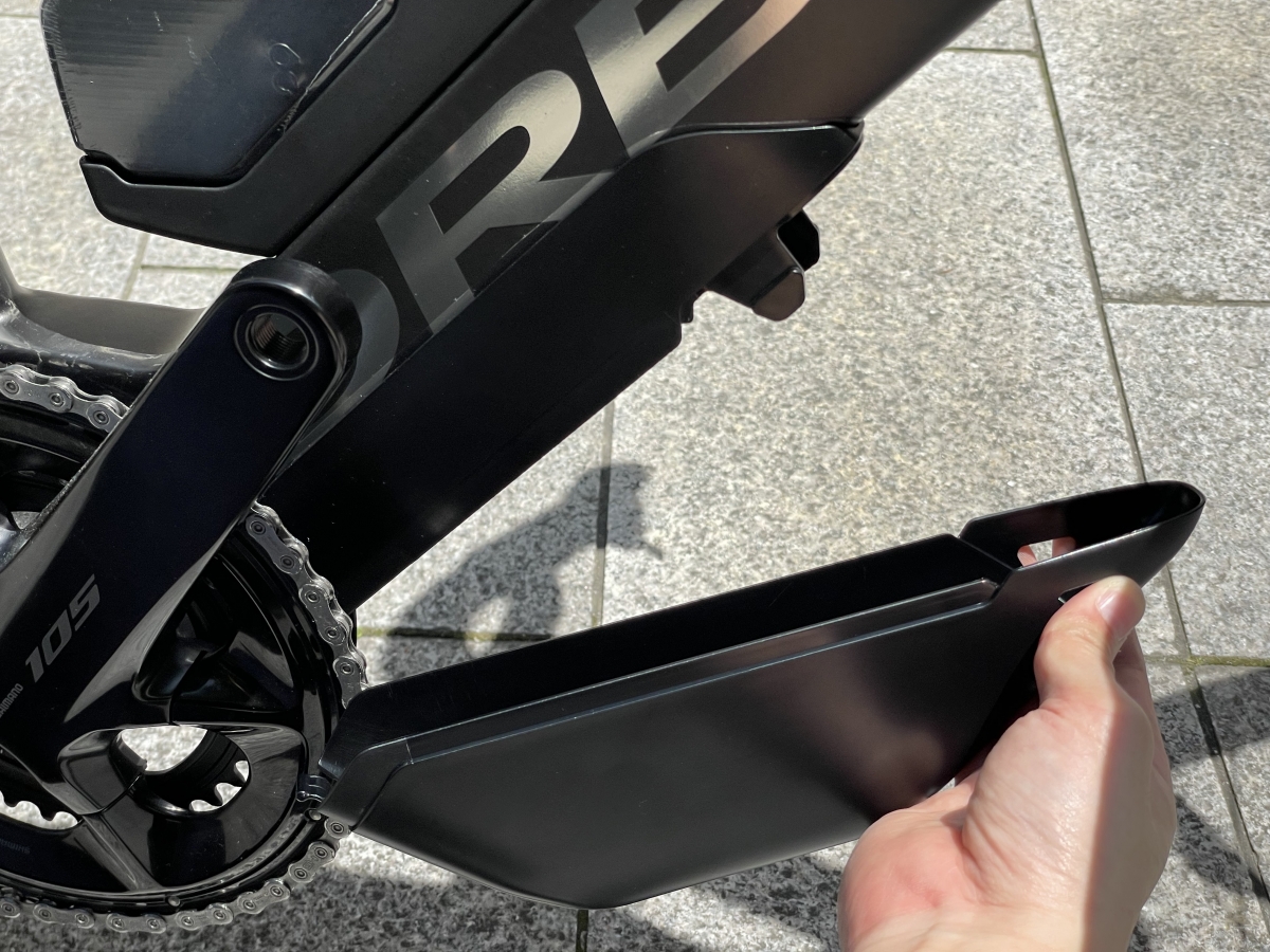 BBドロップを大きくし、チェーンステーを短くして、空力性能、安定性、加速性を向上させているのですが