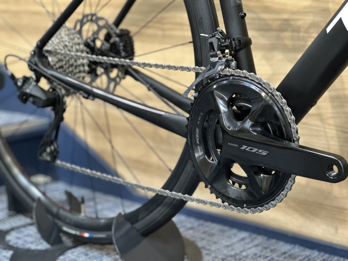 新型105のコンポーネントを装備していることによって変速の面は申し分なく、12速化しているため、あれあゆる状況で対応可能です!!