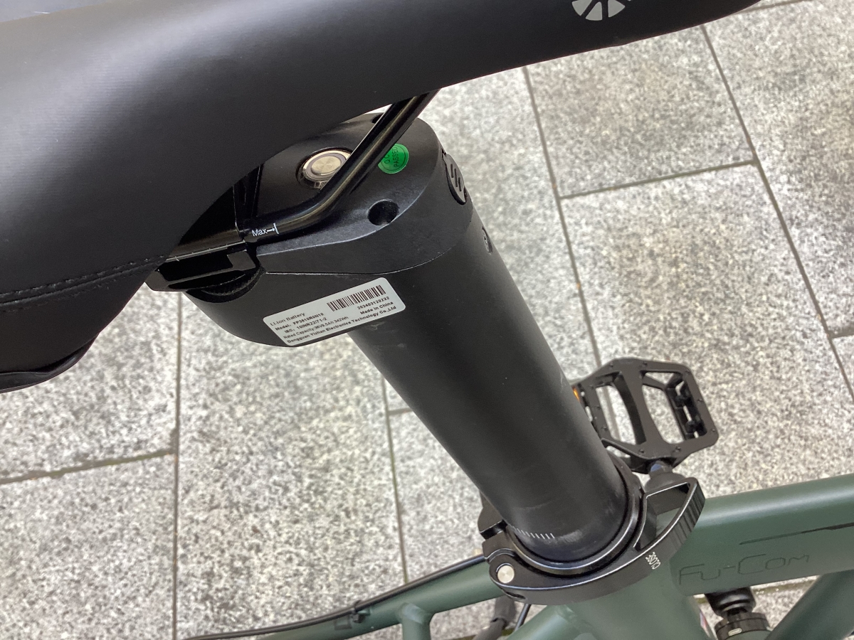 極太シートポストに入っていて、電源スイッチ、充電器差し込み口付き。