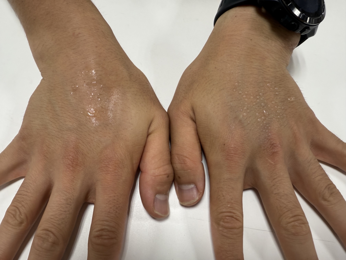 WAKOSから日焼け止めクリームが出ております。「トップアスリート・サンプロテクト」と表記がありますが、どれほど違うのか手の上に霧吹きをして比較写真を撮ってみました。