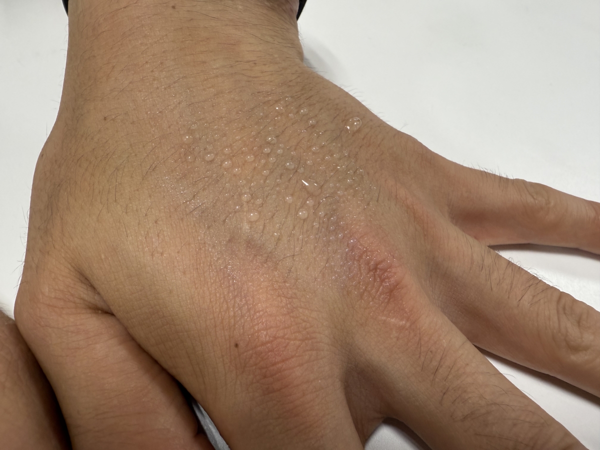シリコンパウダー配合で汗をかいた後も手とボディのサラサラ感が持続する