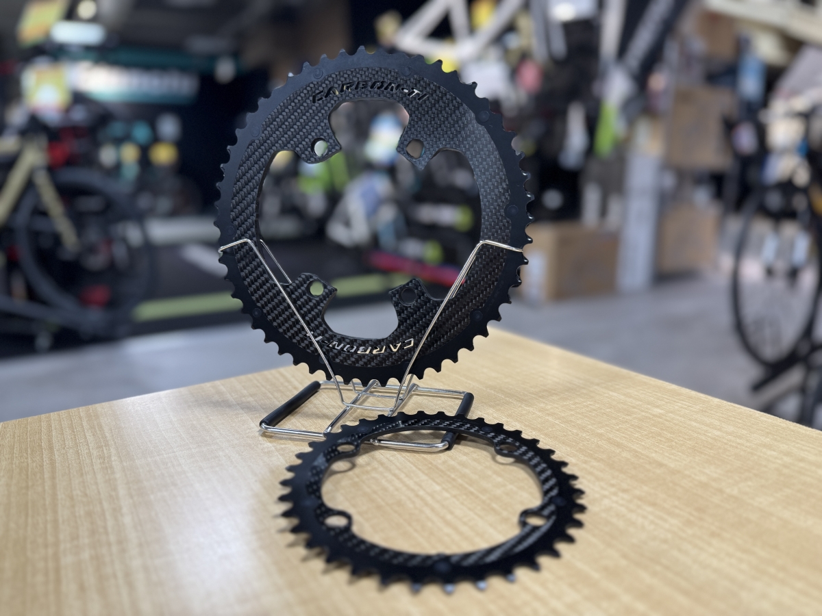 チェーンリングやブレーキローターなど、軽量でクオリティが高くドレスアップ要素もある人気アイテムです!