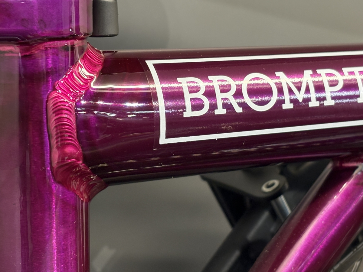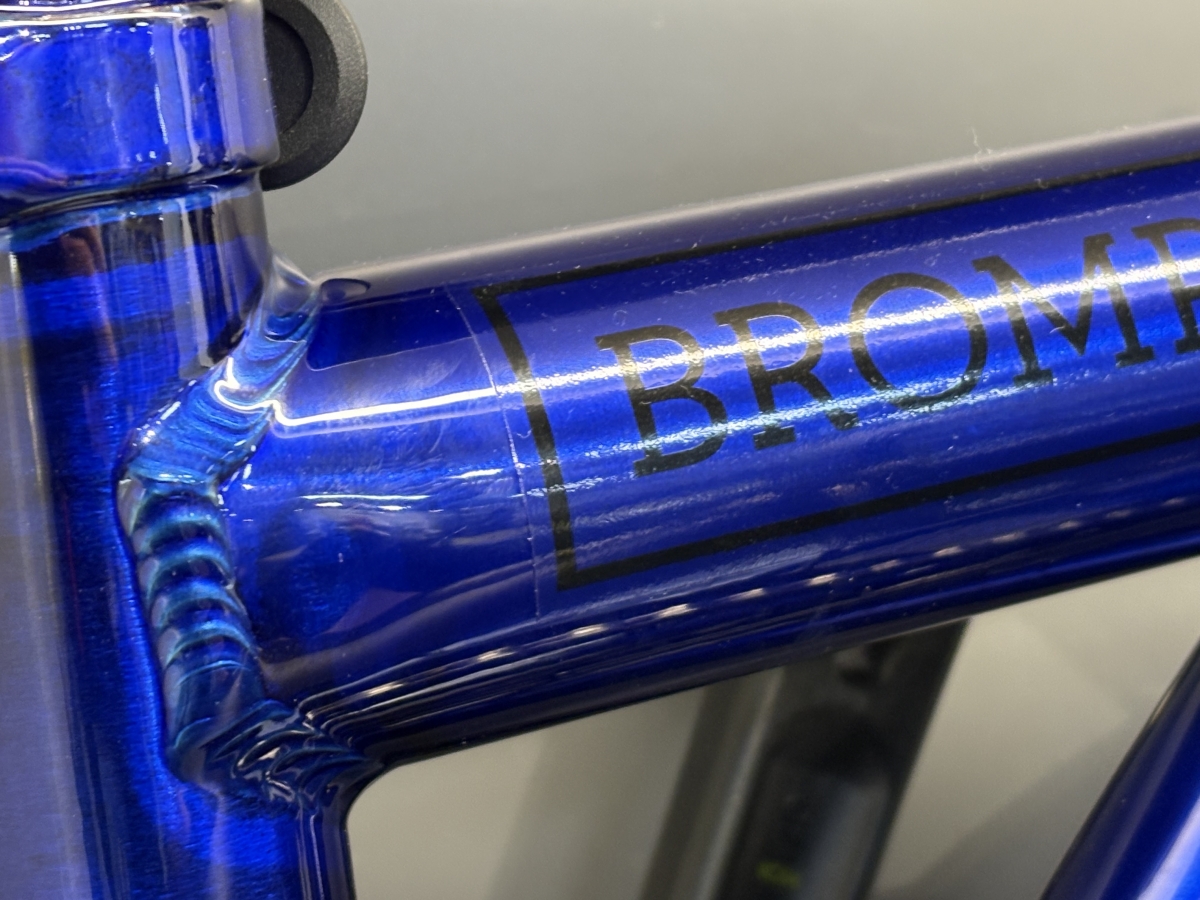 また、手作業のロウ付け溶接による美しい構造、MADE in LONDONでロンドンの工場で生産される品質と精度。独自の設計で折り畳み時に安定して自立。ここは輪行をする方の目線になって設計しているのが感じれて好印象です。カスタムパーツも多く出ており、愛車を自分好みにカスタムできるのもBROMPTONの強みです。