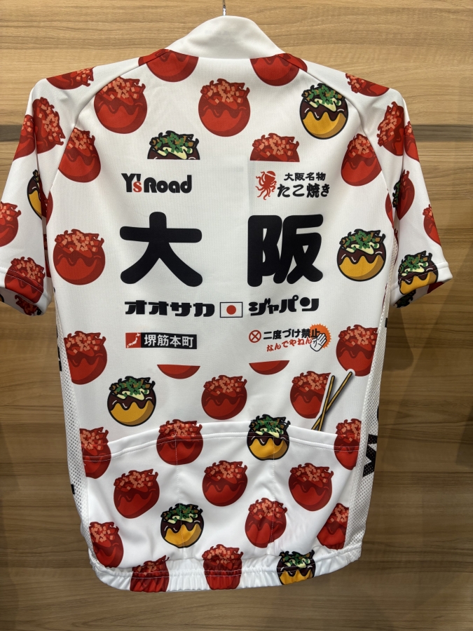 Osaka jersey has a lot of Takoyaki (octopusballs) on both sides. “No double dipping” is one of a famous terms in Osaka. It means like “Don’t look back at the past”.