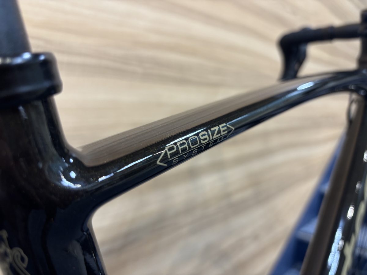 PROSIZE SYSTEMを採用し、シートチューブサイズが何センチであるかを見るのではなく、トップチューブ長を注視することにより、レース用バイクとして最適なライディングポジションを作り出すことができます。そして、全体的にフレームをコンパクト化することによりフレームの剛性アップに繋げています!