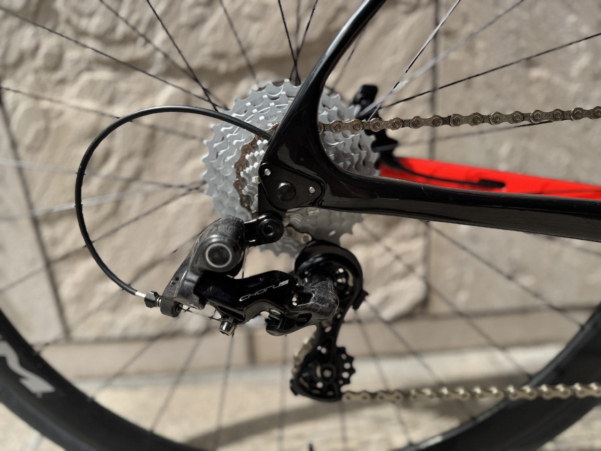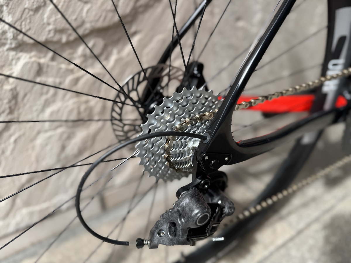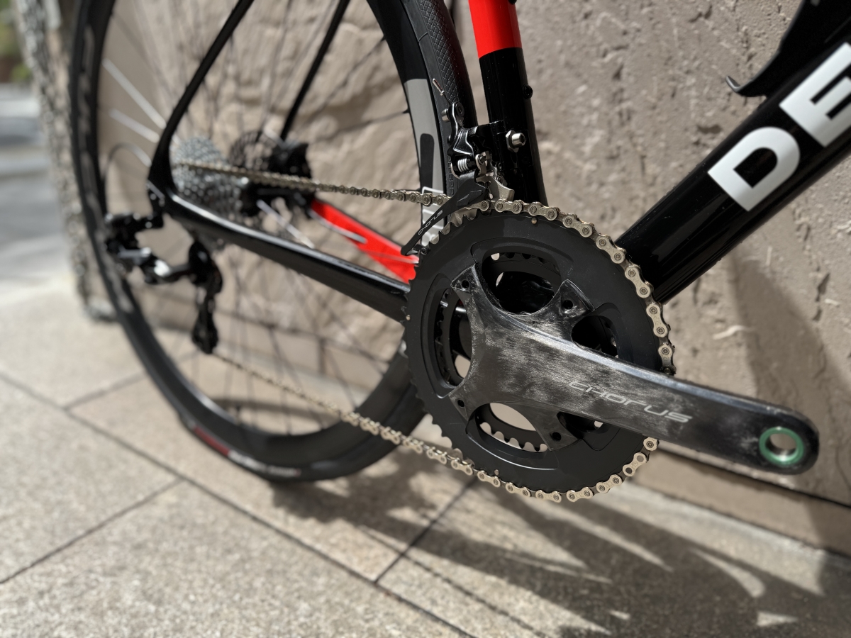 ジオメトリーもエントリーロードらしく若干のアップライト設計となっていますが、軸は間違いなくレーシングフレームであり、芯の硬さがあるベストバランスに設計されてます。