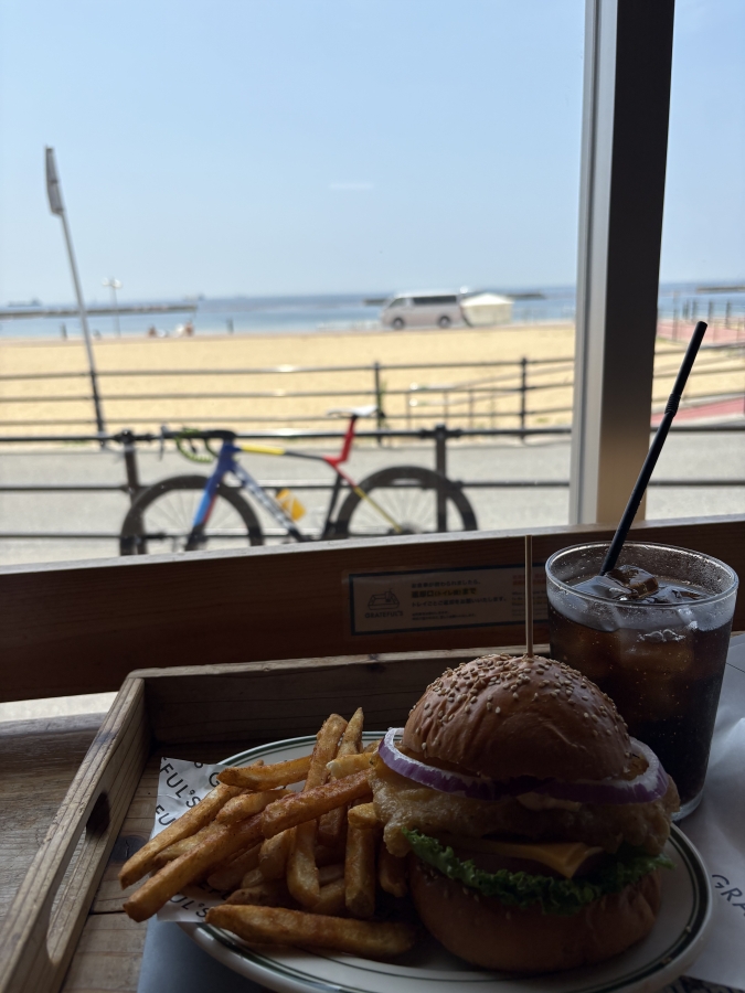 ライド中のコーラはいつもの10倍染み渡ります!糖分が抜けた体は、ファストフードがベストマッチ!