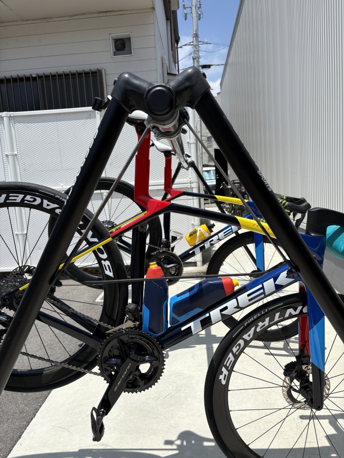 休憩はコマ目にとって、熱中症対策しておりました!スタッフバイクのMadoneを2台揃えて、