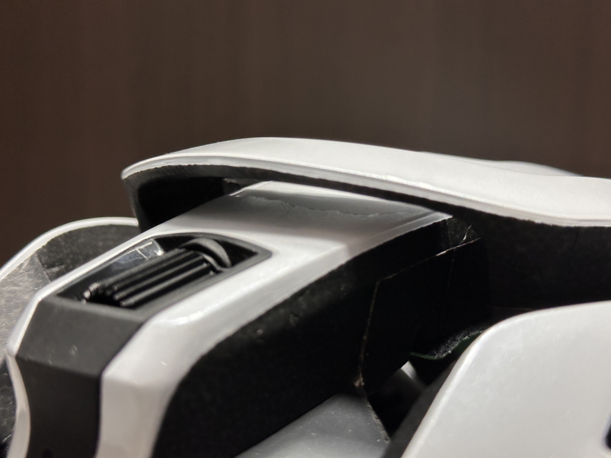 まず驚くのがその軽さ。実測で約230g(Mサイズ)と非常に軽く、被っていることを忘れそうになります。近年では200gを切るヘルメットも出てきましたが、オールラウンドに使用するのであれば全然問題ない重量になるのではないでしょうか。