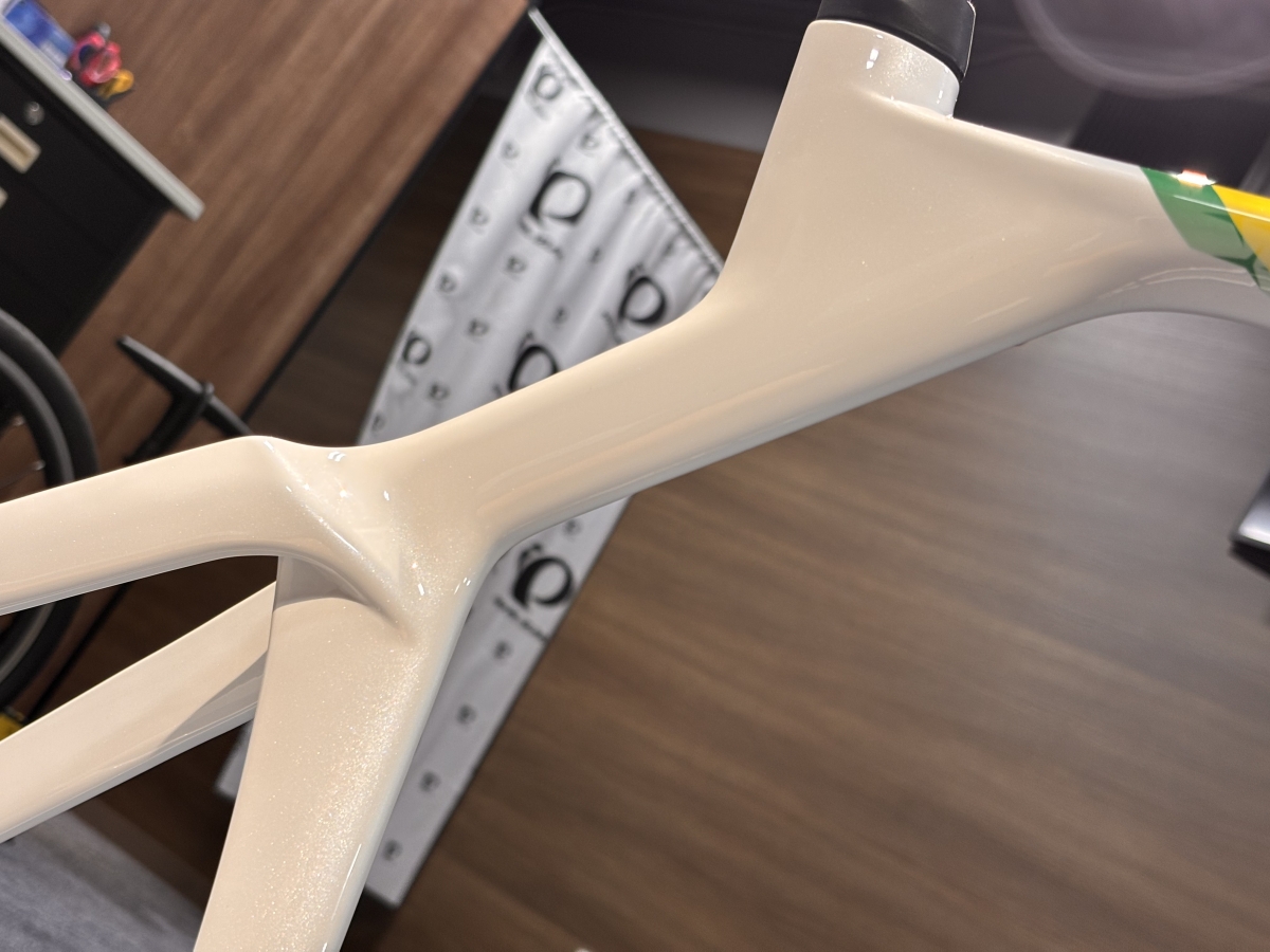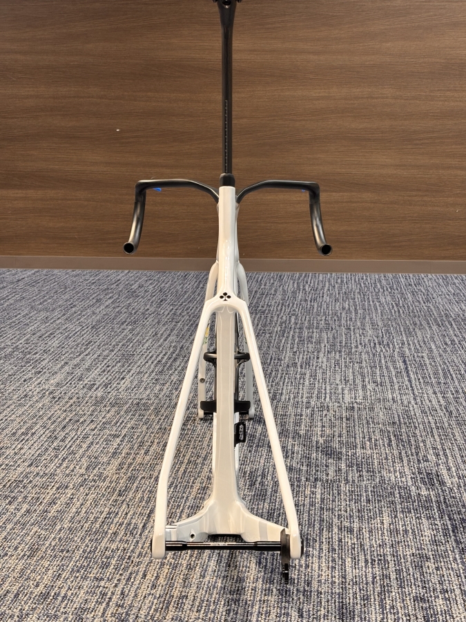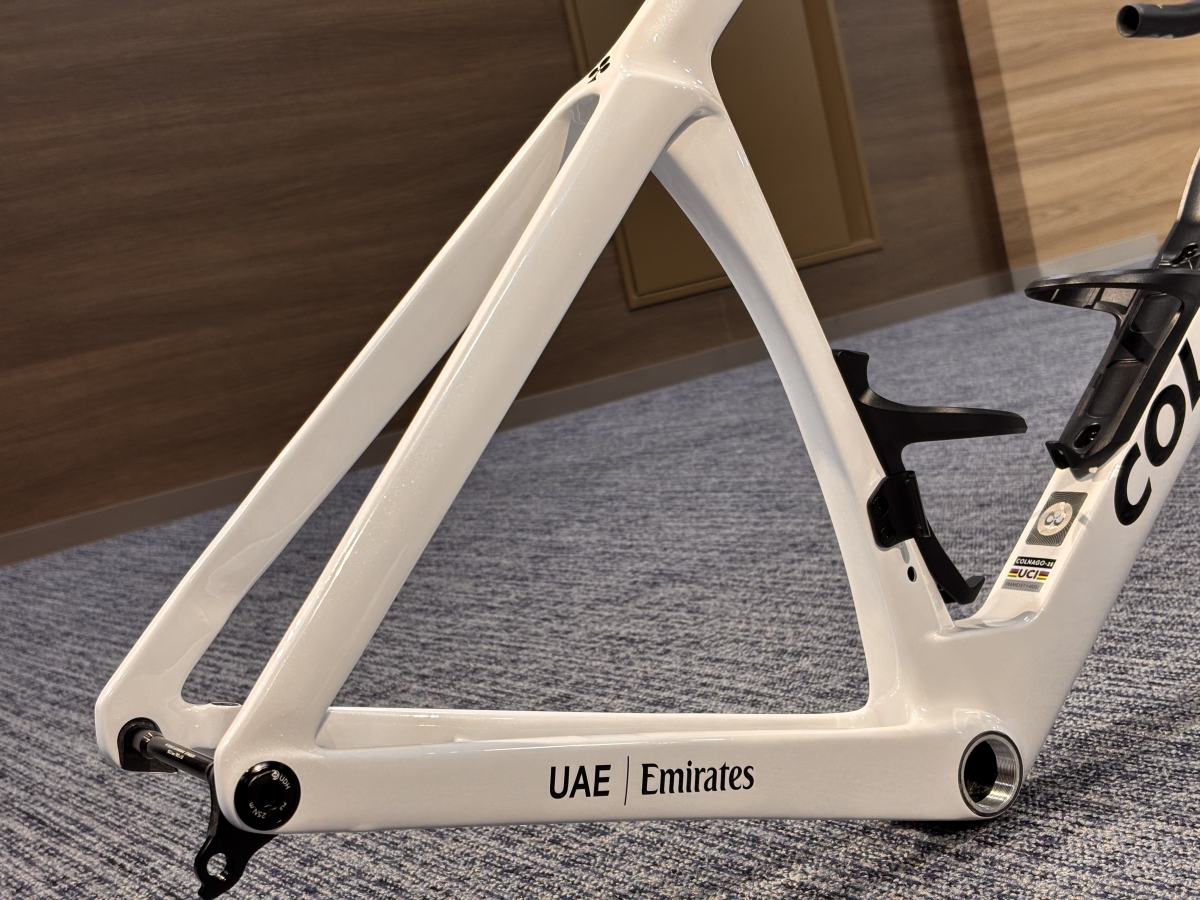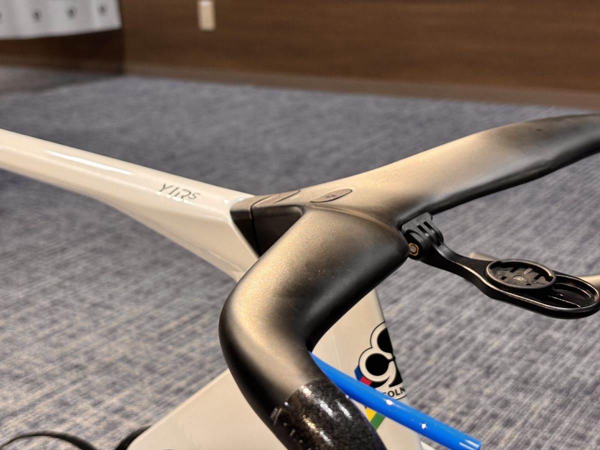 フレーム各部も見るからに空力重視な形状ですが意外と分厚さを感じずツアーレースを走りきるためのエアロマシンだという事が伺えます。