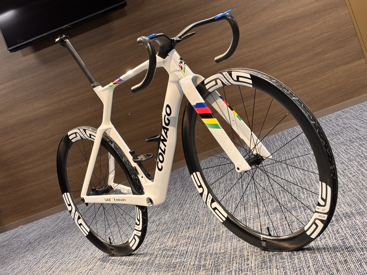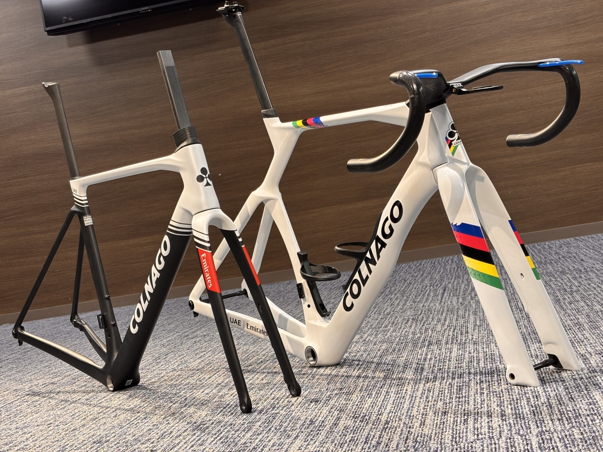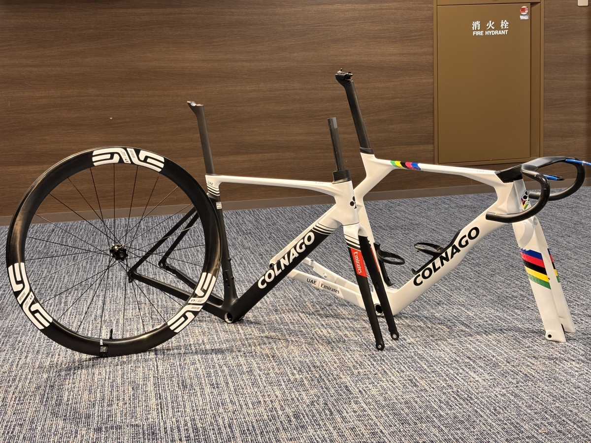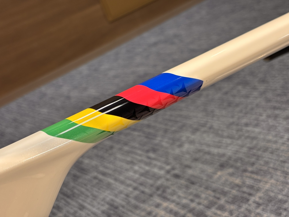 フレーム各部も見るからに空力重視な形状ですが意外と分厚さを感じずツアーレースを走りきるためのエアロマシンだという事が伺えます。