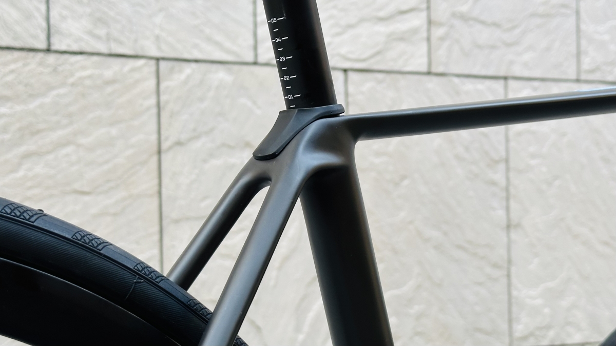 ここを細くすることにより、フレームを軽くすることができるのはもちろん、細い方が振動をいなしてくれやすいので快適性も向上します。