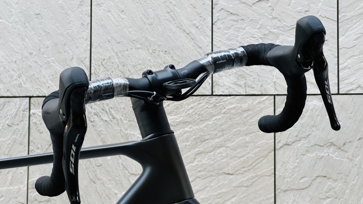 ハンドルはヒルクライムなどを考慮して上体が起きるようになっています。