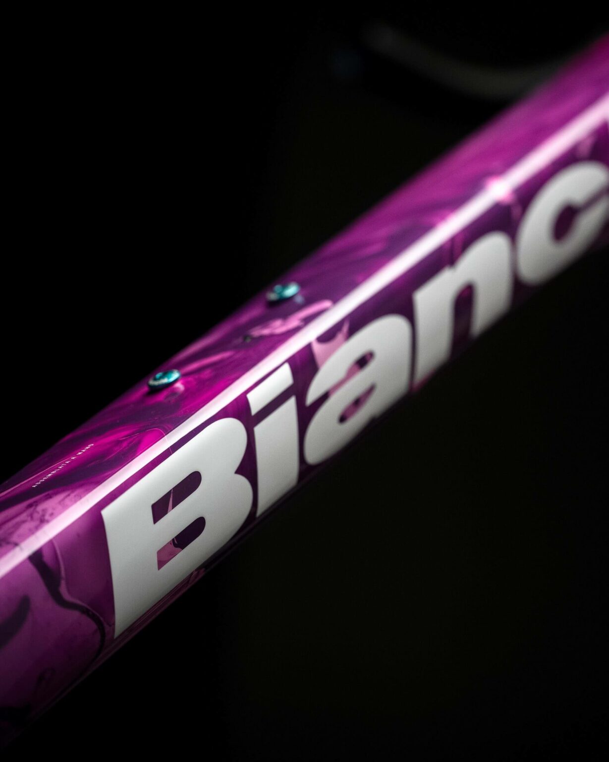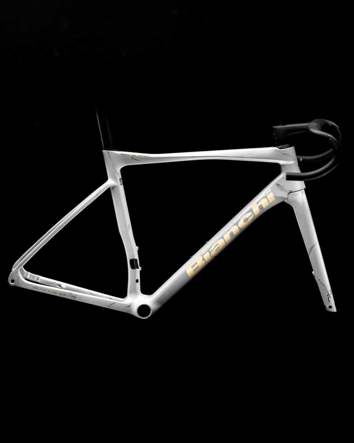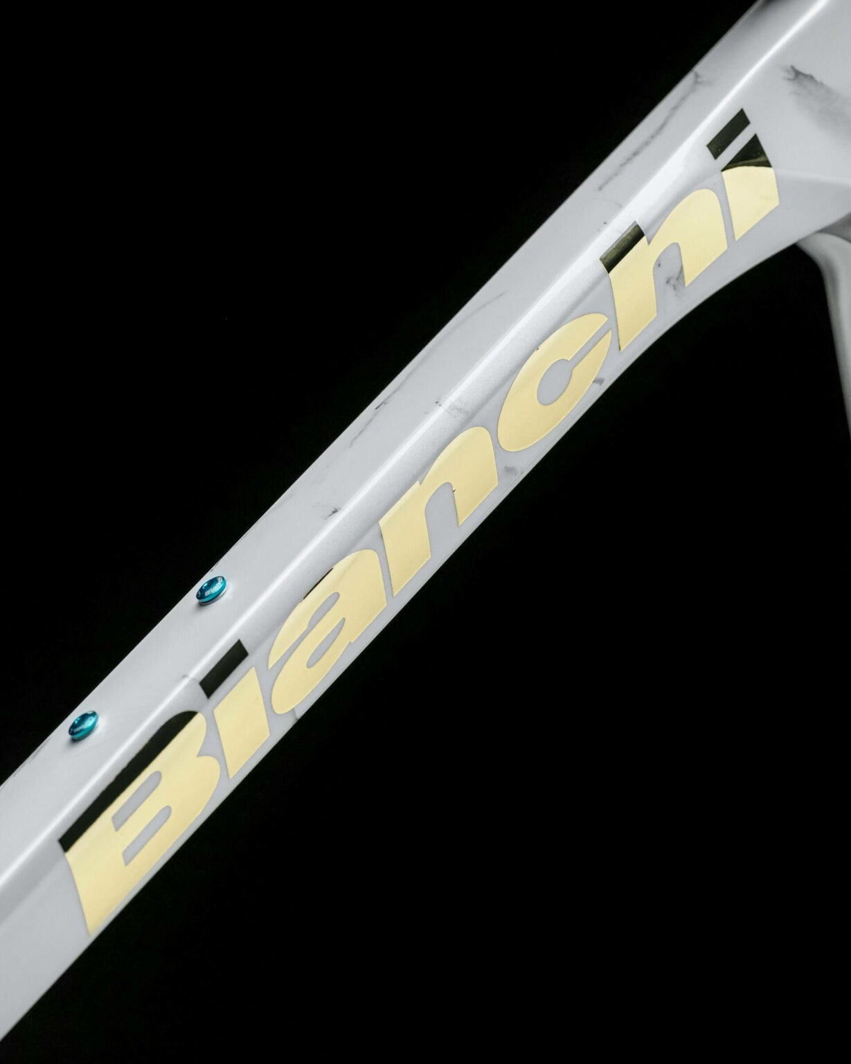 イタリアの彫刻家アントニオ・カノーヴァにちなんで名づけられた「CANOVA(カノーヴァ)」は、彫刻された大理石のような滑らかで磨き上げられた質感を再現した仕上げです。その仕上がりは、現代的な軽やかさと、クラシカルな素材が持つ重厚さとの鮮やかなコントラストを生み出しています。ビアンキのロゴやその他のグラフィックは、輝きのあるゴールドで彩られています。