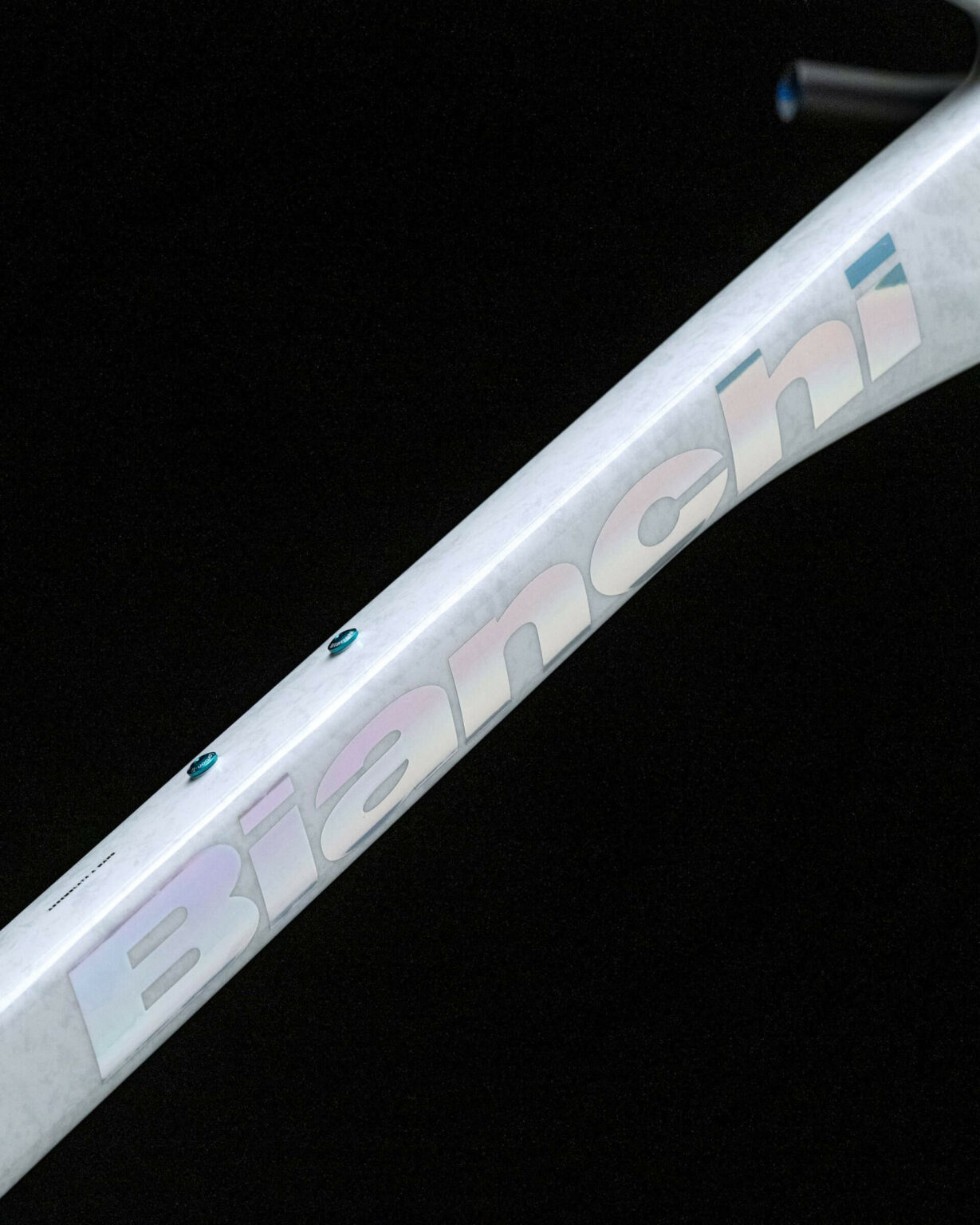 航空宇宙探査の力強く機能的な美学が、ビアンキのもっとも未来的なモデルに吹き込まれた「MOON LANDING WHITE(ムーンランディングホワイト)」。繊細なテクスチャを持つホワイトは、月面の風景を思わせ、ホログラフィックなディテールが、無数の色彩がきらめく銀河のような輝きを生み出します。