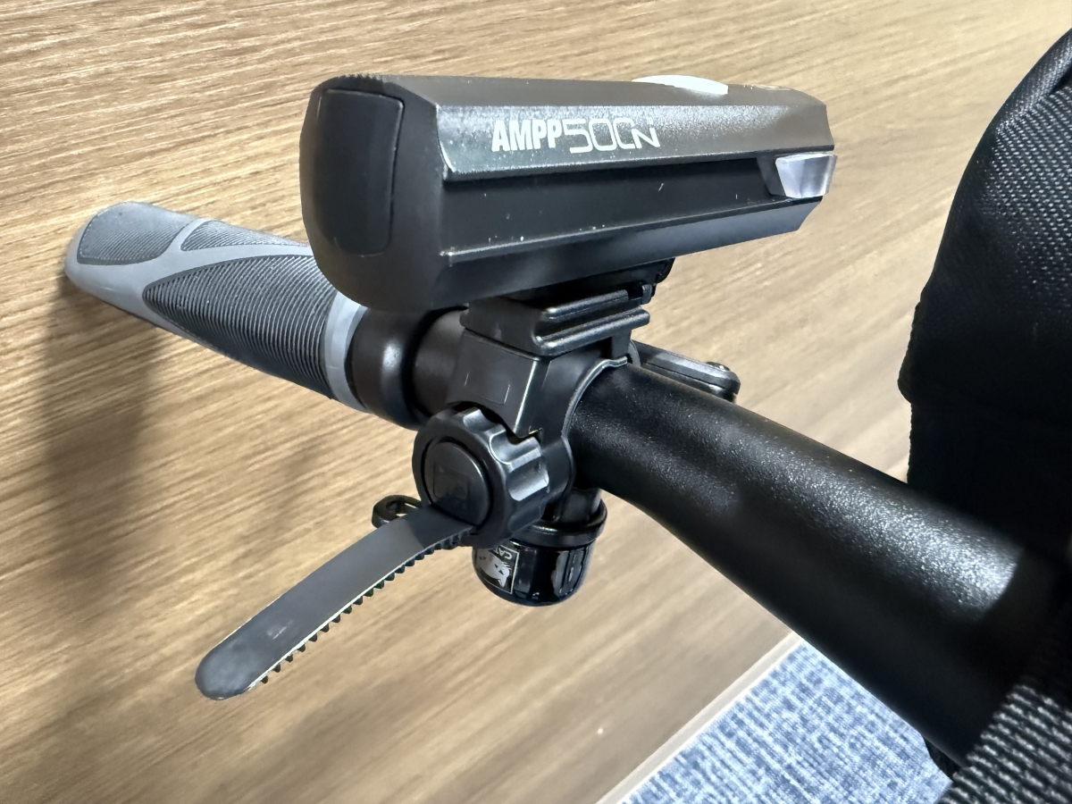 ライトは当店人気No1のキャットアイを選択してもらいベルについてはライトの取り付け台座に一緒につけています。