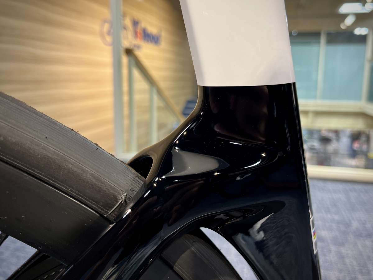 ダウンチューブと滑らかにつながるようなこのボトルはダウンチューブ周りの気流を整えます。さらに収納力を増やしたい場合は、ダウンチューブとシートチューブに標準のボトルマウントも装備されています。