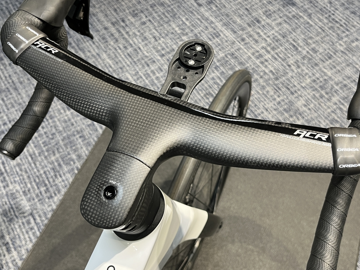 フレームにはオルベアの最上級カーボン、OMXカーボンが採用されています。剛性の高いカーボン素材をできるだけ少ないピース数で製作されているため、剛性を保ったまま、軽量に仕上げられています。