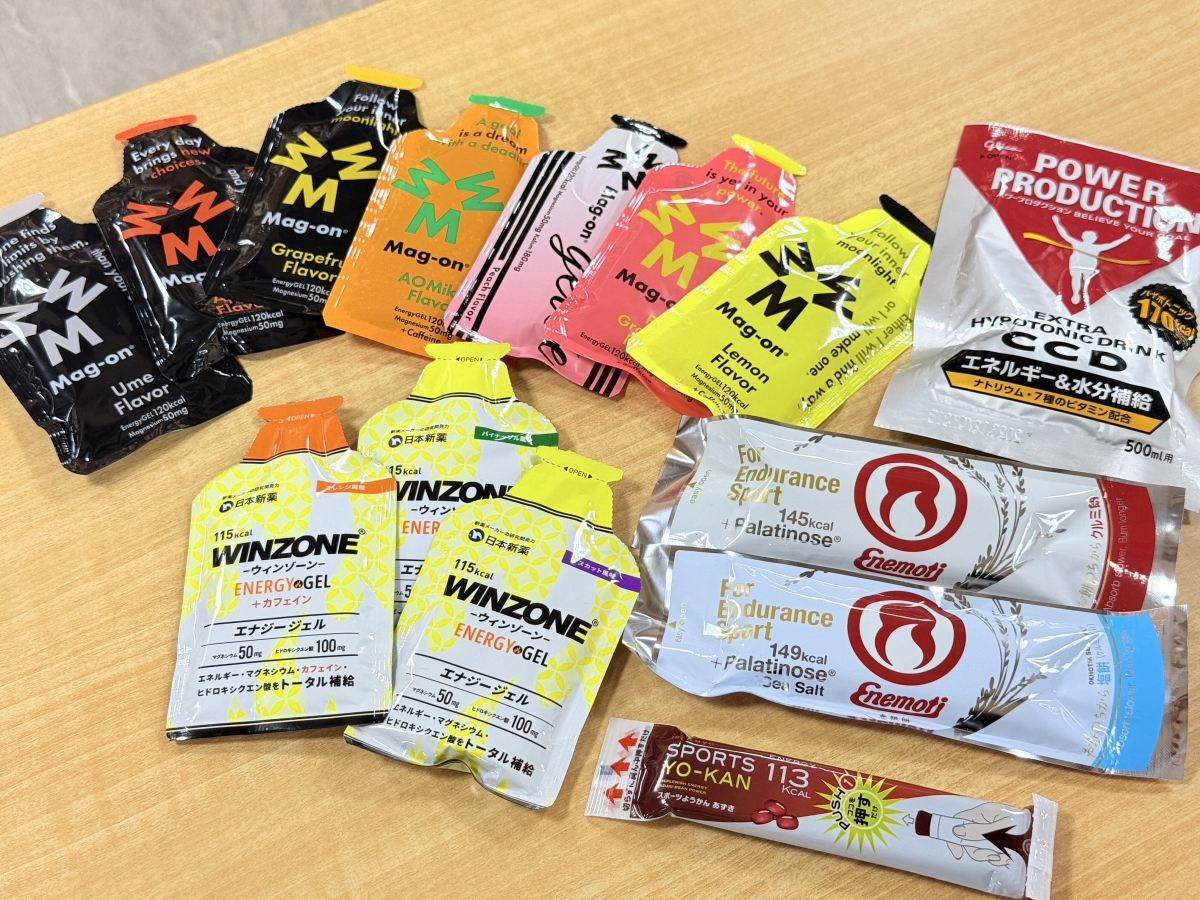 目標のポイントにたどり着く前に力が出なくなったりする事があったりするので、そこでエネルギーを補給をする為の食品が補給食になります!