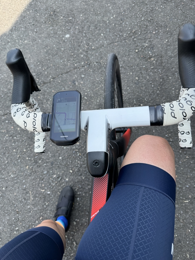 せっかくなのでお店のデモ機、ガーミンのEDGE1050をお借りし地図表記やナビ機能をメインに使用してみました。