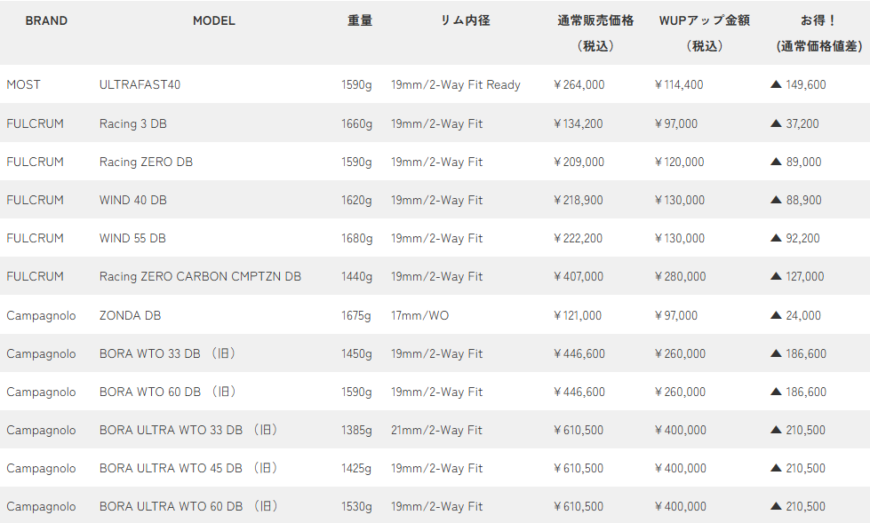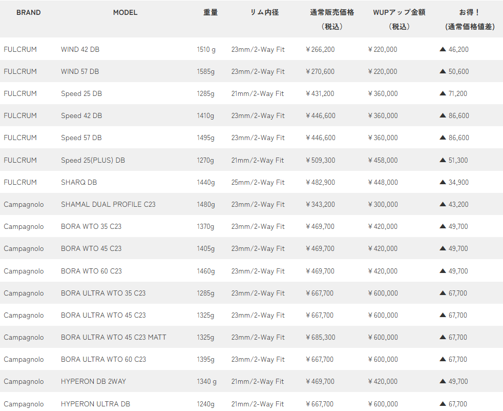 今回は新たに最新のホイールも仲間入りし、最新のスペックがお求めやすい価格となりました。
