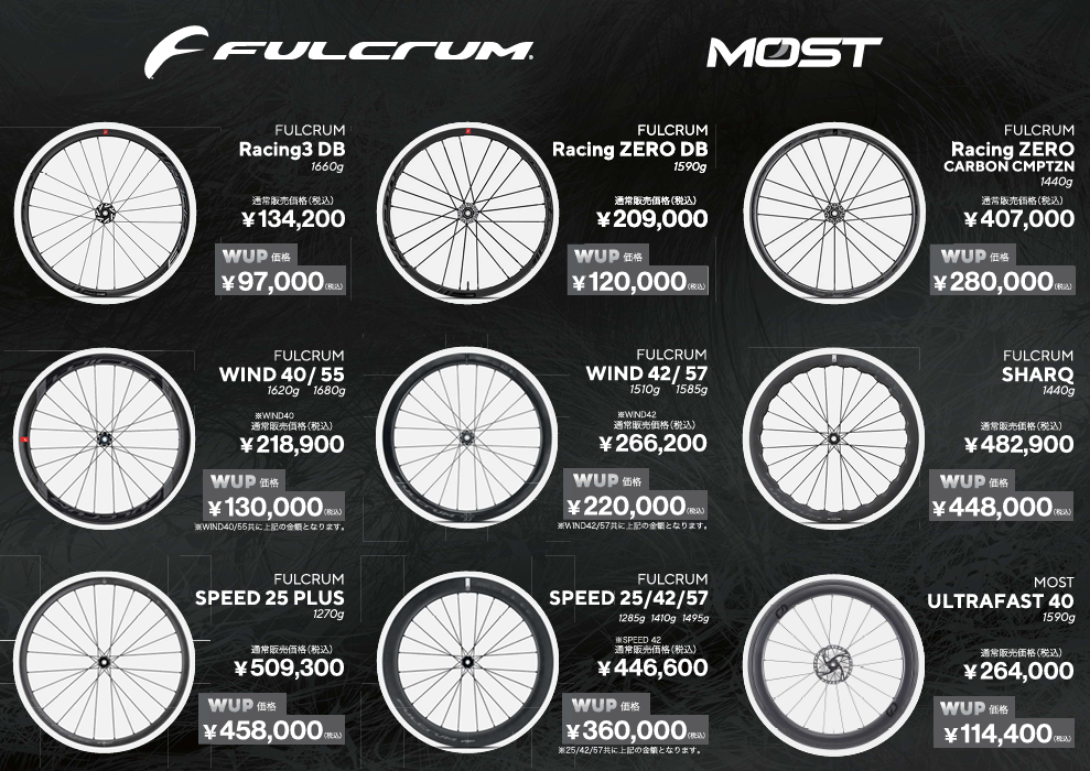 今回のプログラムから最新のSHAMAL DUAL PROFIREやSHARQ DBもWUP対象となり、最新のエアロダイナミクスに優れたホイールもチョイスいただけます。