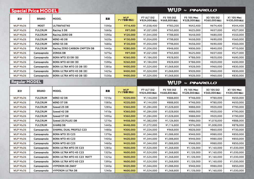 PINARELLOの一部モデルで適用可能なWUP(ホイール・アップグレード・プログラム)