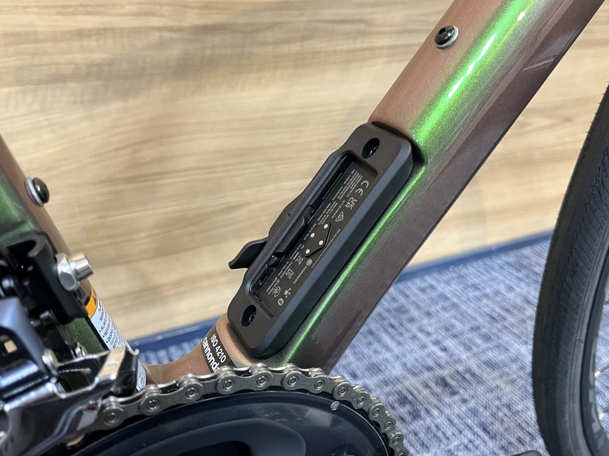 ホイールを回すだけで前後ライトとリアレーダーが起動します。バッテリーはダウンチューブに取り付けられており、このバッテリーを充電するだけで前後ライトと後方レーダーが使用できるようになります。個別に充電する必要がないため、非常に便利な機能です。