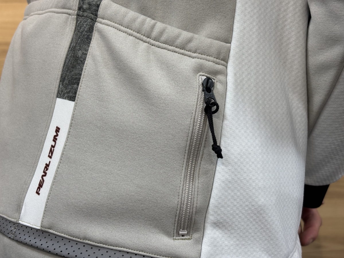 左右脇のベンチレーションポケットでファスナーを開ければ通気性が高まりムレを防ぐ。