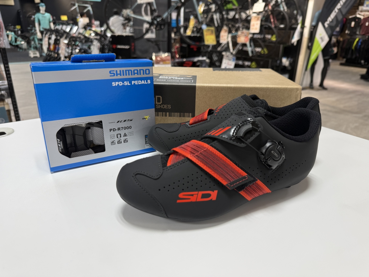 ビンディングシューズと「SHIMANO」ビンディングペダルを同時購入でビンディングペダルを10%OFFさせていただきます。