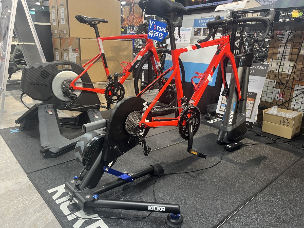 静粛性も高く、最大再現勾配は16%までとバーチャルライドでもコースの再現性も高いです。こちらは後輪を外しKICKRにバイクを接続するタイプです。後輪を外さず接続するタイプと比べて、後輪を使用しないため、タイヤの摩耗が無くスマートトレーナー自体もリーズナブルな価格のため経済性に優れています!
