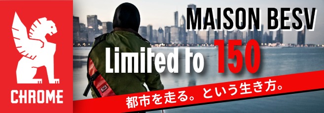 耐水・撥水性に優れた素材で、CHROMEとBESVの2つのロゴが入ったオリジナルデザインです。
