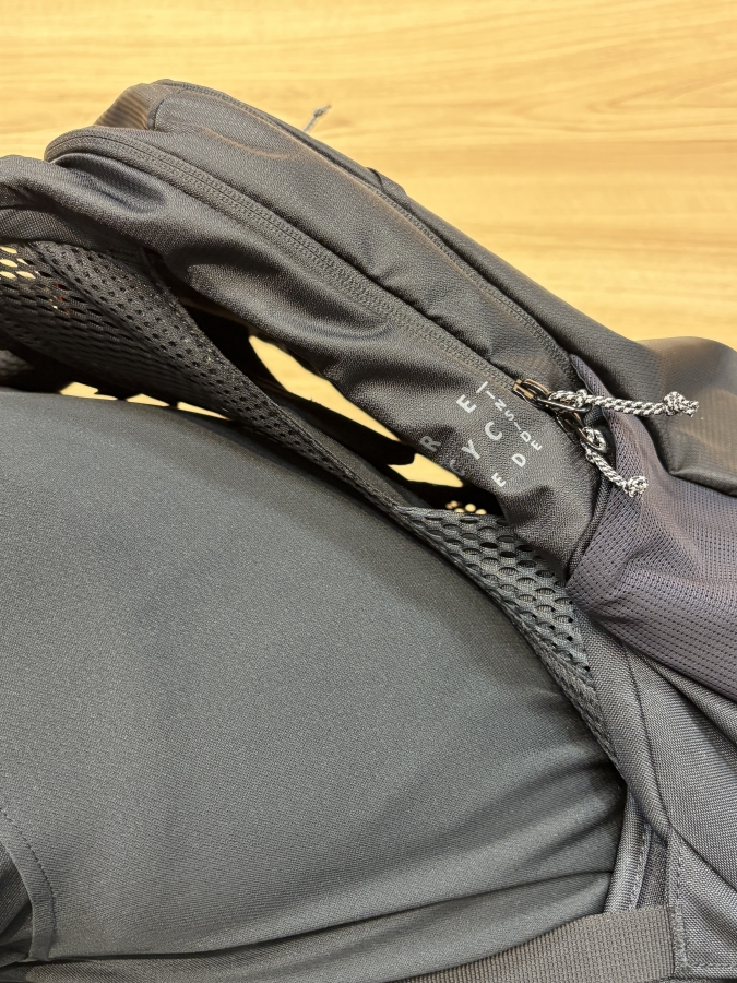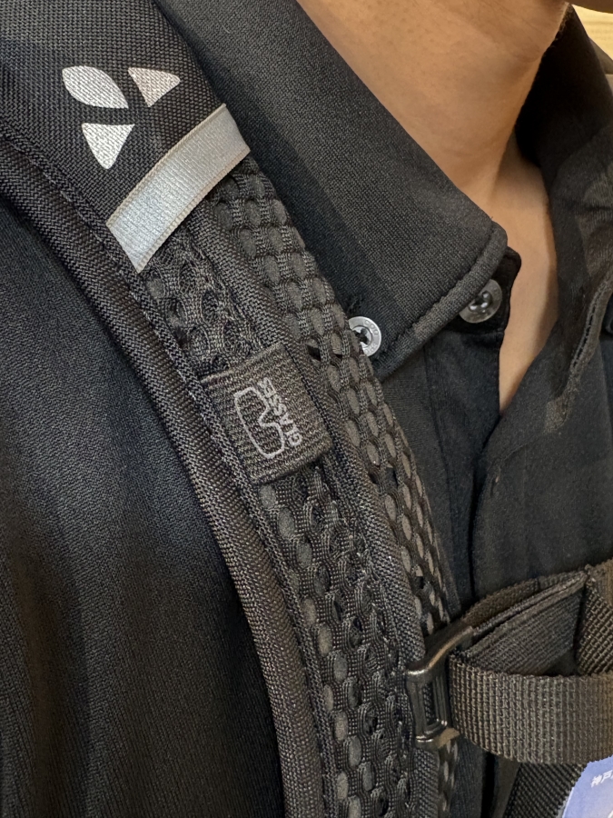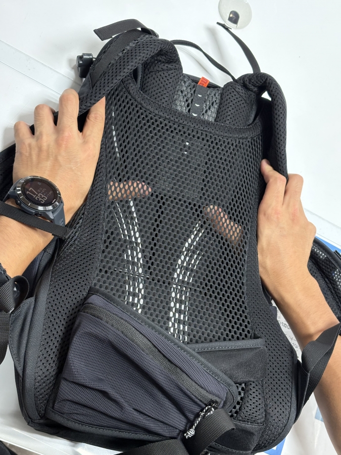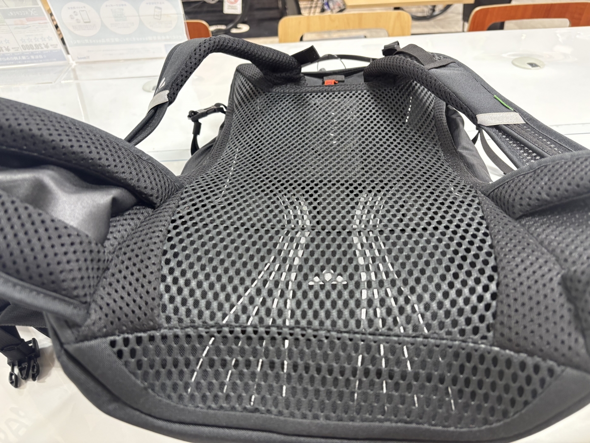 背中と直接当たらないことによって、汗をかいても問題なしです。また、メッシュパネルが背中の形と合うように湾曲している。