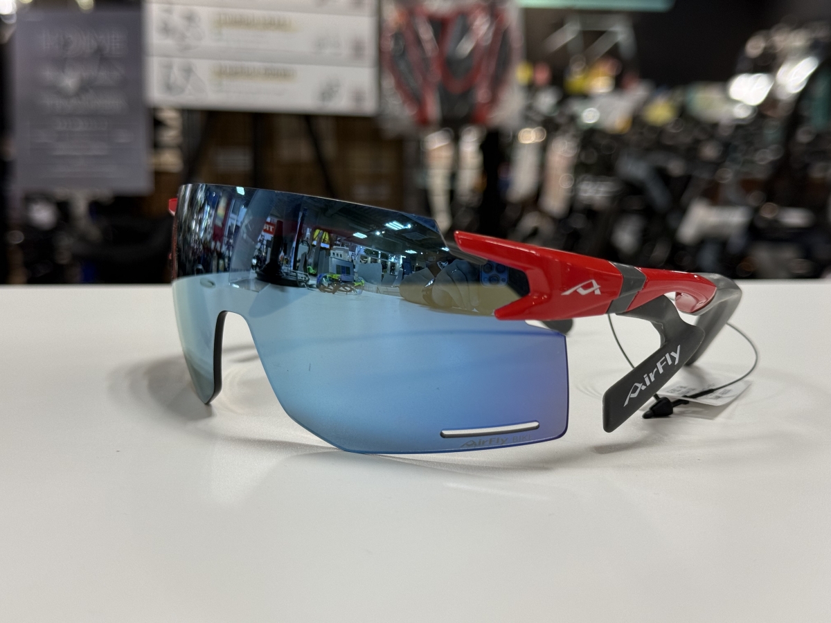 カスタム:BKブルーミラーレンズ + レッドフレーム