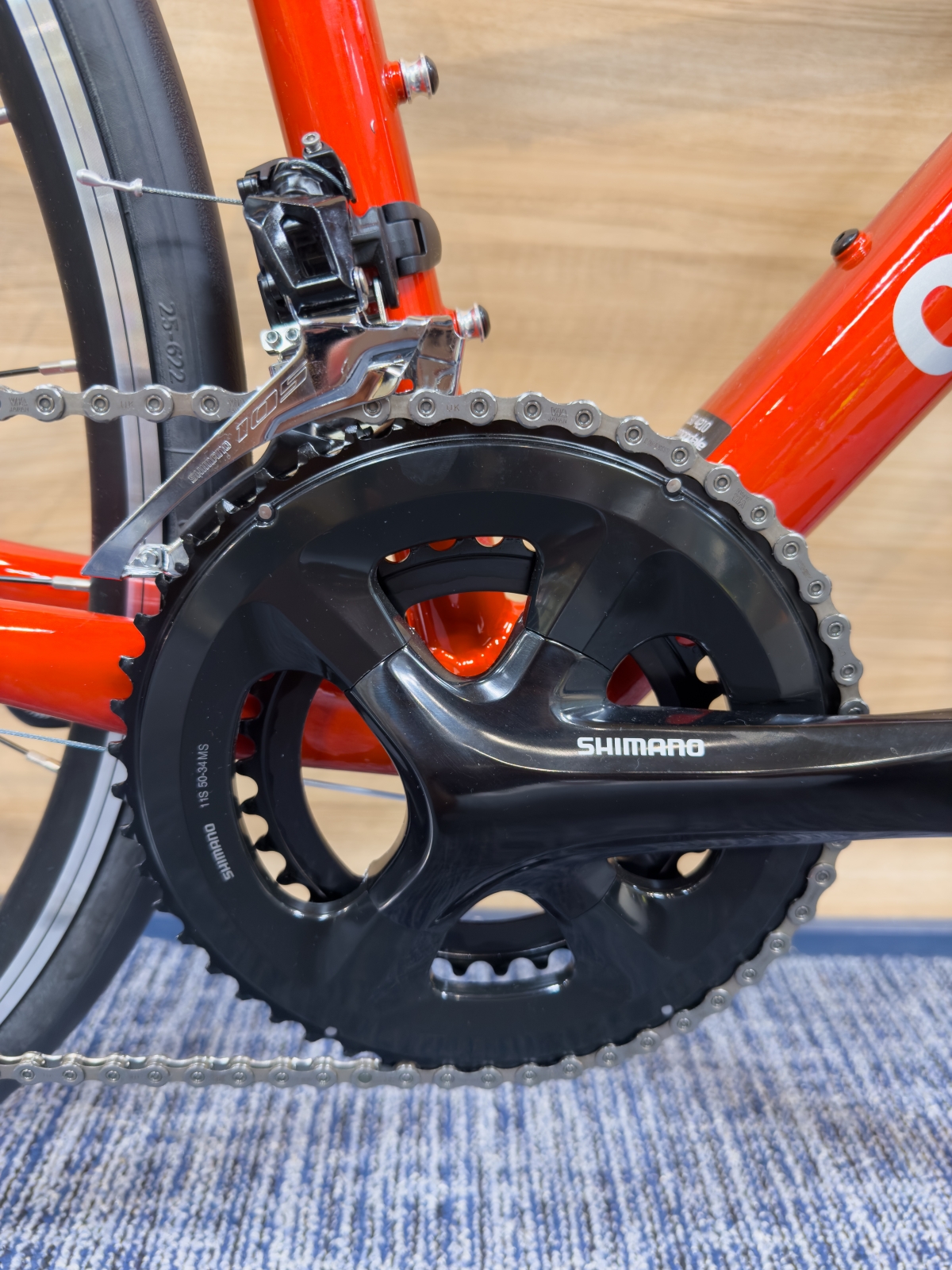 フロントは50-34のコンパクトクランクを搭載しており平坦ヵら山岳にも対応できますので、初心者から幅広く使っていただけます。