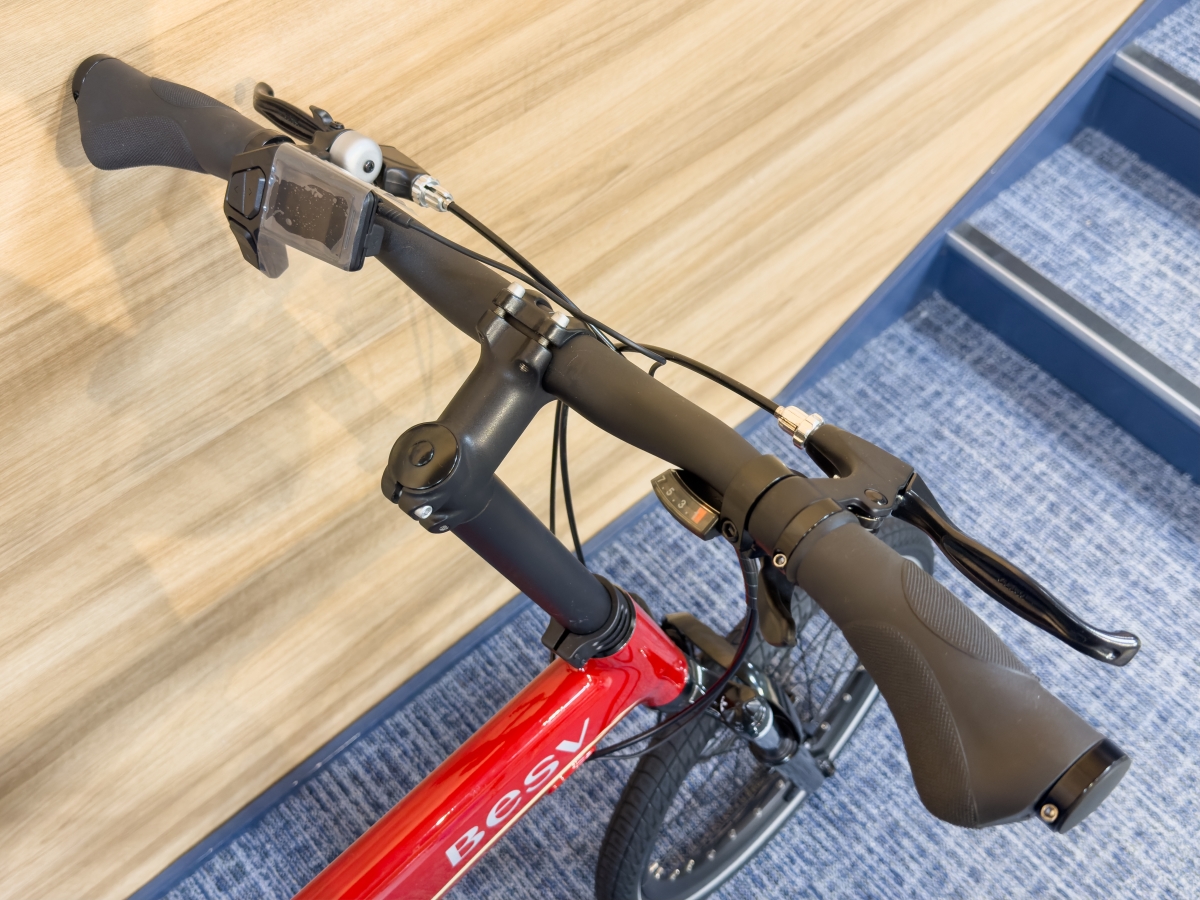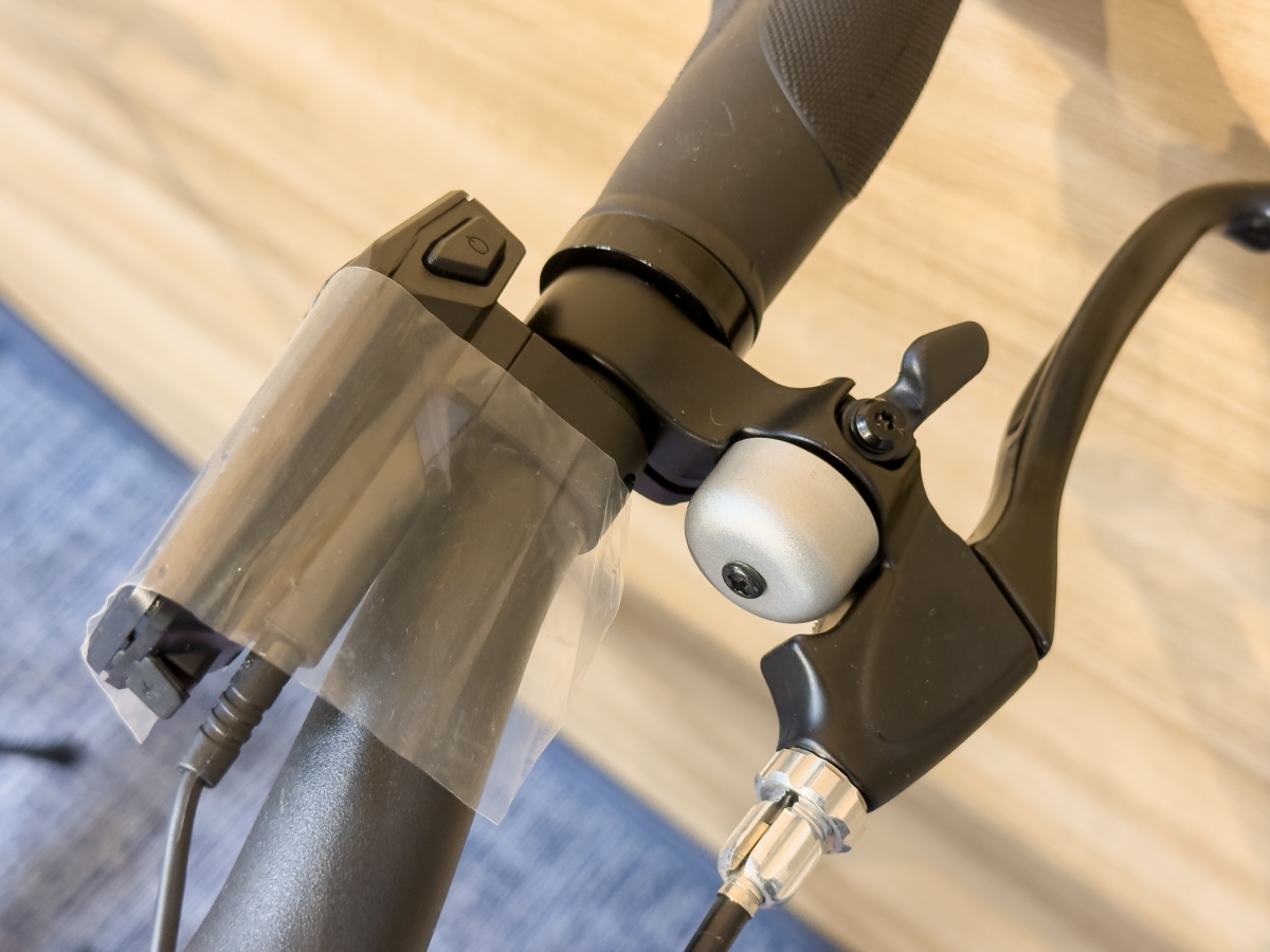 モニターの先には小型とは言え、ブレーキレバーにベルが標準装備されておりわざわざ買わなくてもいいし、最初から専用設計で搭載されてるのでハンドル回りをがちゃがちゃしなくていいのは嬉しいですね!