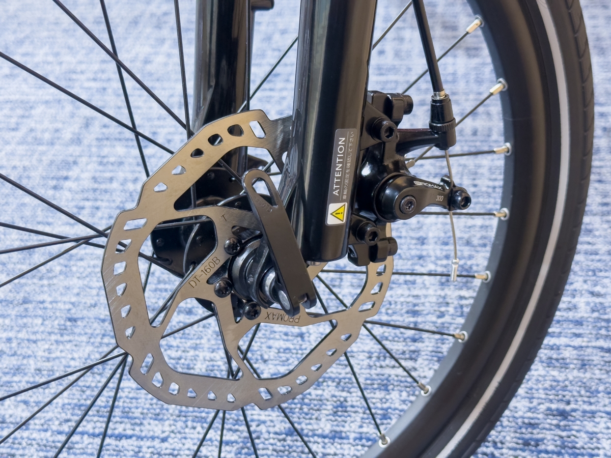 ブレーキにはディスクブレーキが採用されているで、スピードが出すぎてしまっても大丈夫!長い下り坂を下っても大丈夫!しっかりディスクブレーキで制御できますので買い物をして重いものを持ち帰っても安心です。