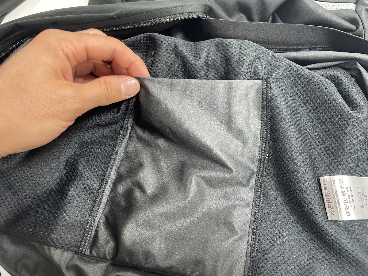 こちらのウィンドブレーカーは内側にポケットがついており、ここにまとめることが出来るのでバックポケットの中がぐちゃぐちゃにならずに済みます。