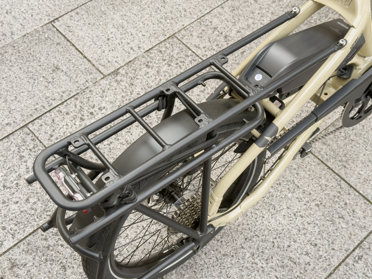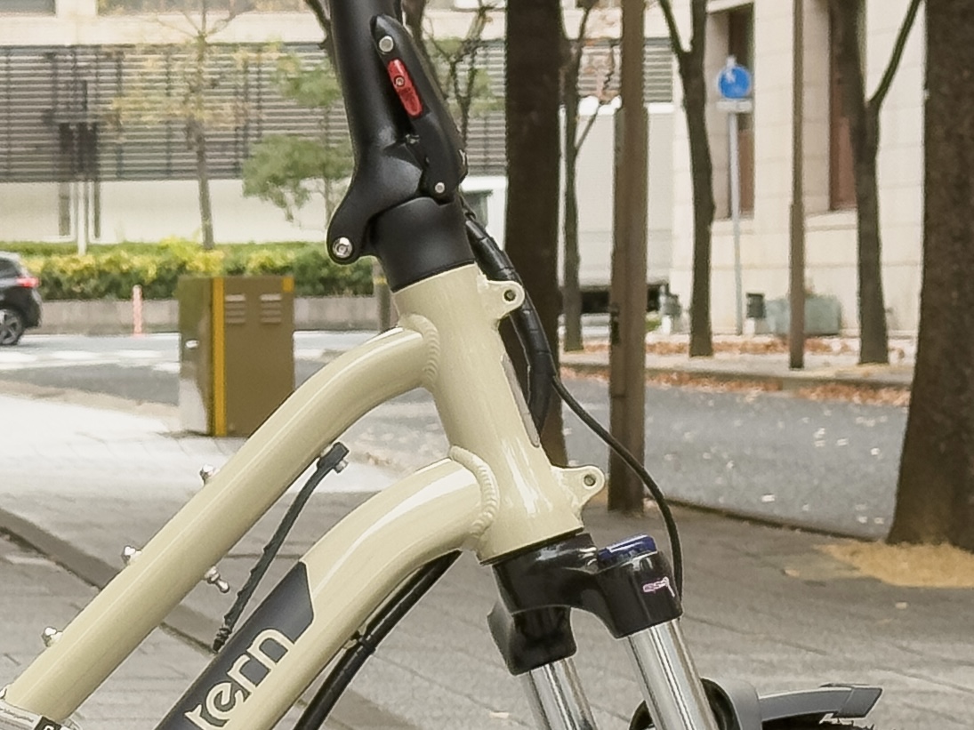 重いものを運ぶことも出来るこの電動アシストバイクですが、重量があるので段差で荷物と身体に不快感が出ないようにサスペンションが搭載されております。