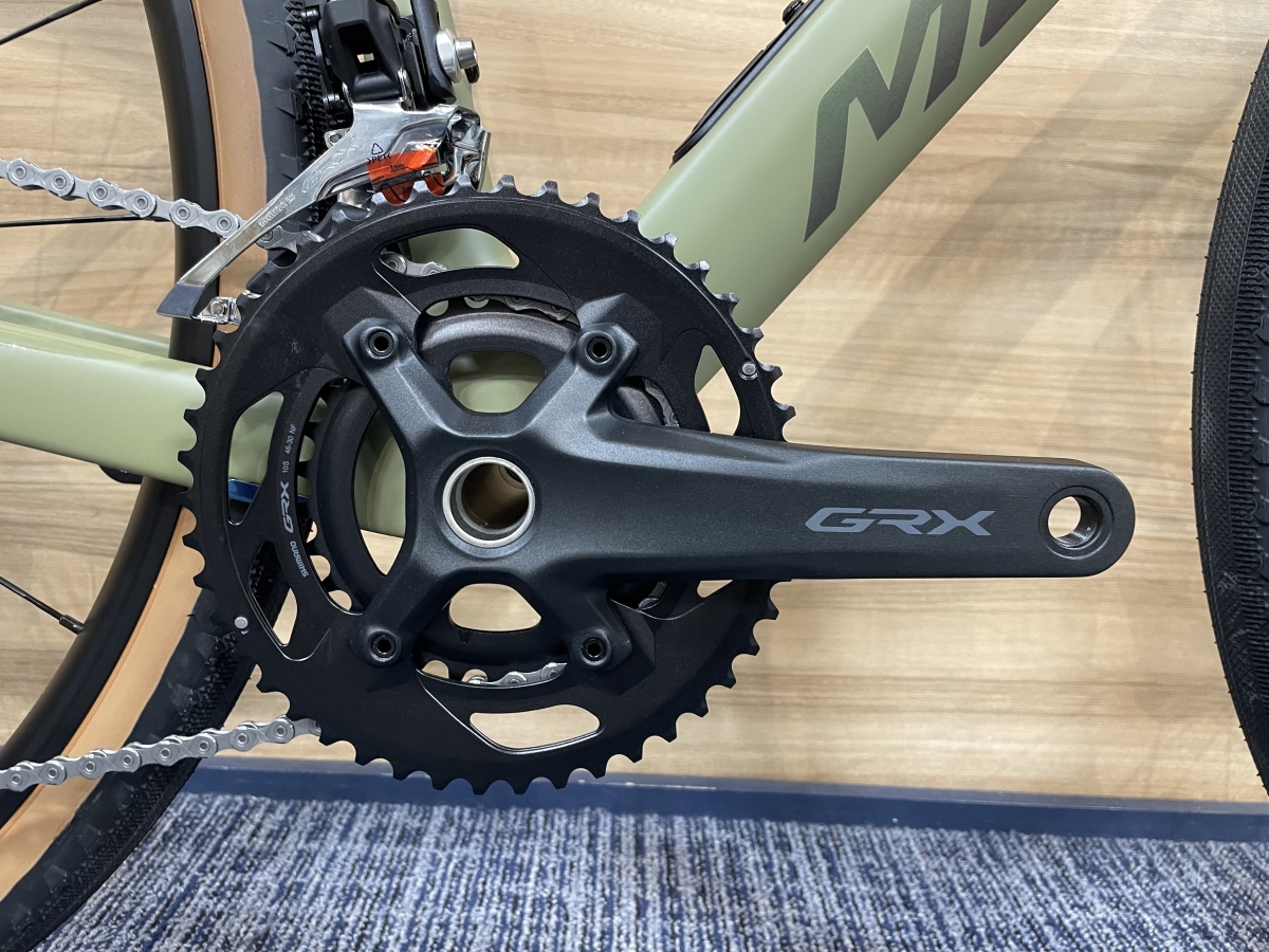 GRX400を搭載し、フロントのギアは46-30tでリアは11-36tとグラベル系のギア比になっています。