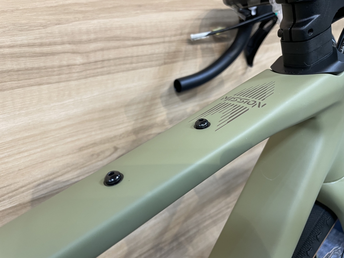 トップチューブには二か所ダボ穴が開いており、ダウンチューブにはストレージボックスもついています。