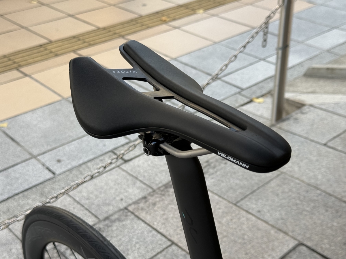 サドルもVELOMANN製がインストール。サドルは人それぞれ合う合わないがありますので、好みのものに交換するのもいいですね。