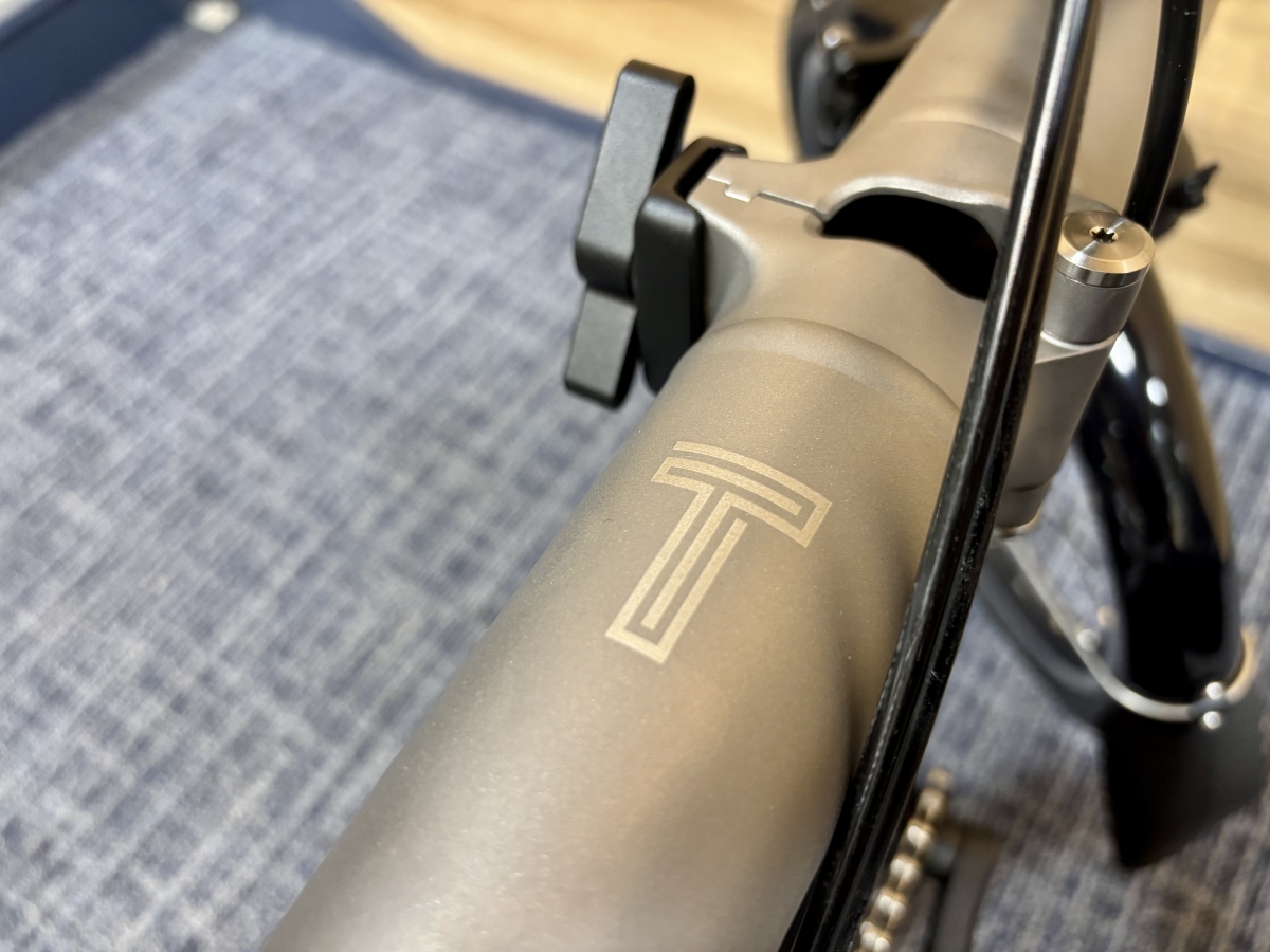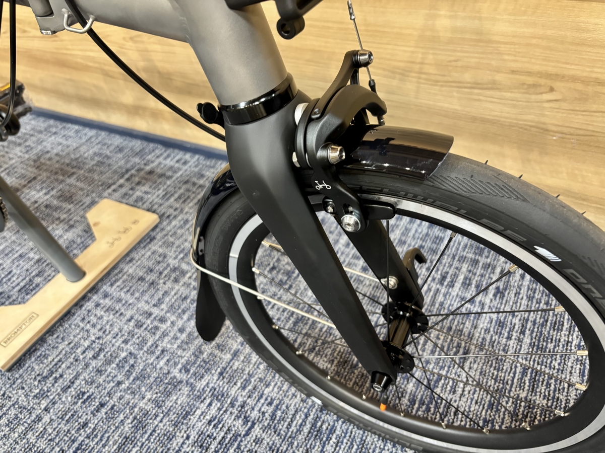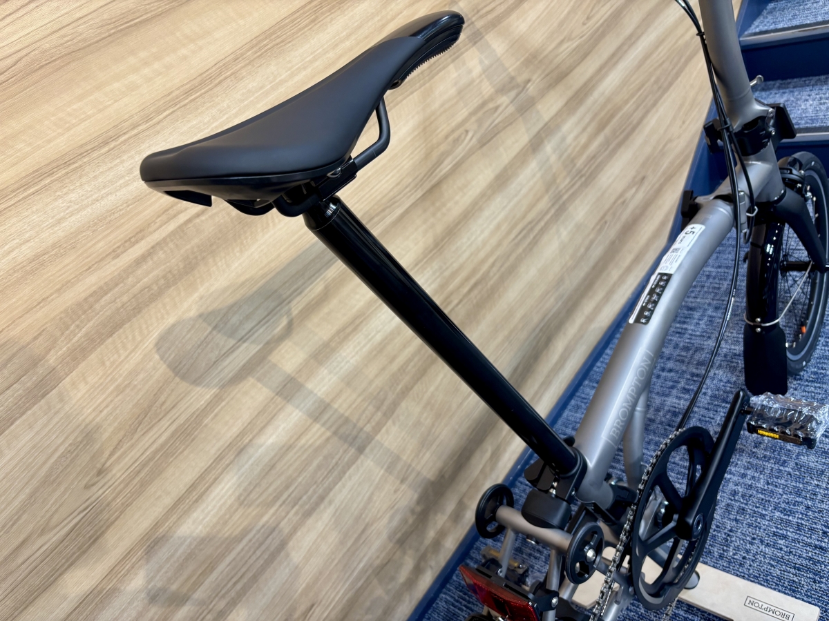 カーボンシートポストは日常使用のために0.3mmのスチールアーマーで補強する新しいカーボンシートポストを採用しています。その結果、折りたたみ時の摩耗や110kg の荷重に耐えられる超軽量のシートポストが実現しました。また、サドルにはカーボンレールサドルを搭載しており、さらにカーボンフォークも搭載しております!