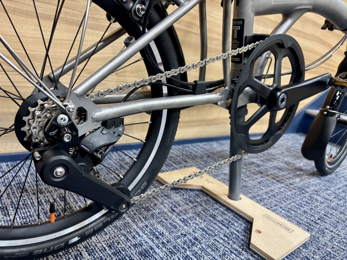 特許出願中のドライブトレインは、 折りたたみの内側に収まるようゼロから設計されました。可能な限り軽く、都市で最適なパフォーマンスを実現するように設計されています。また、カーボンクランクセットは軽量化と高剛性を同時に実現しました。